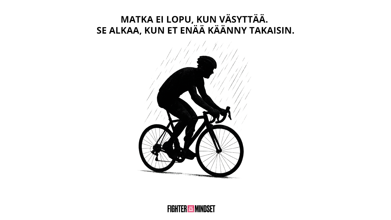 Pyörän päällä, kun vesi sataa silmille ja matkaa on vielä kymmeniä kilometrejä.